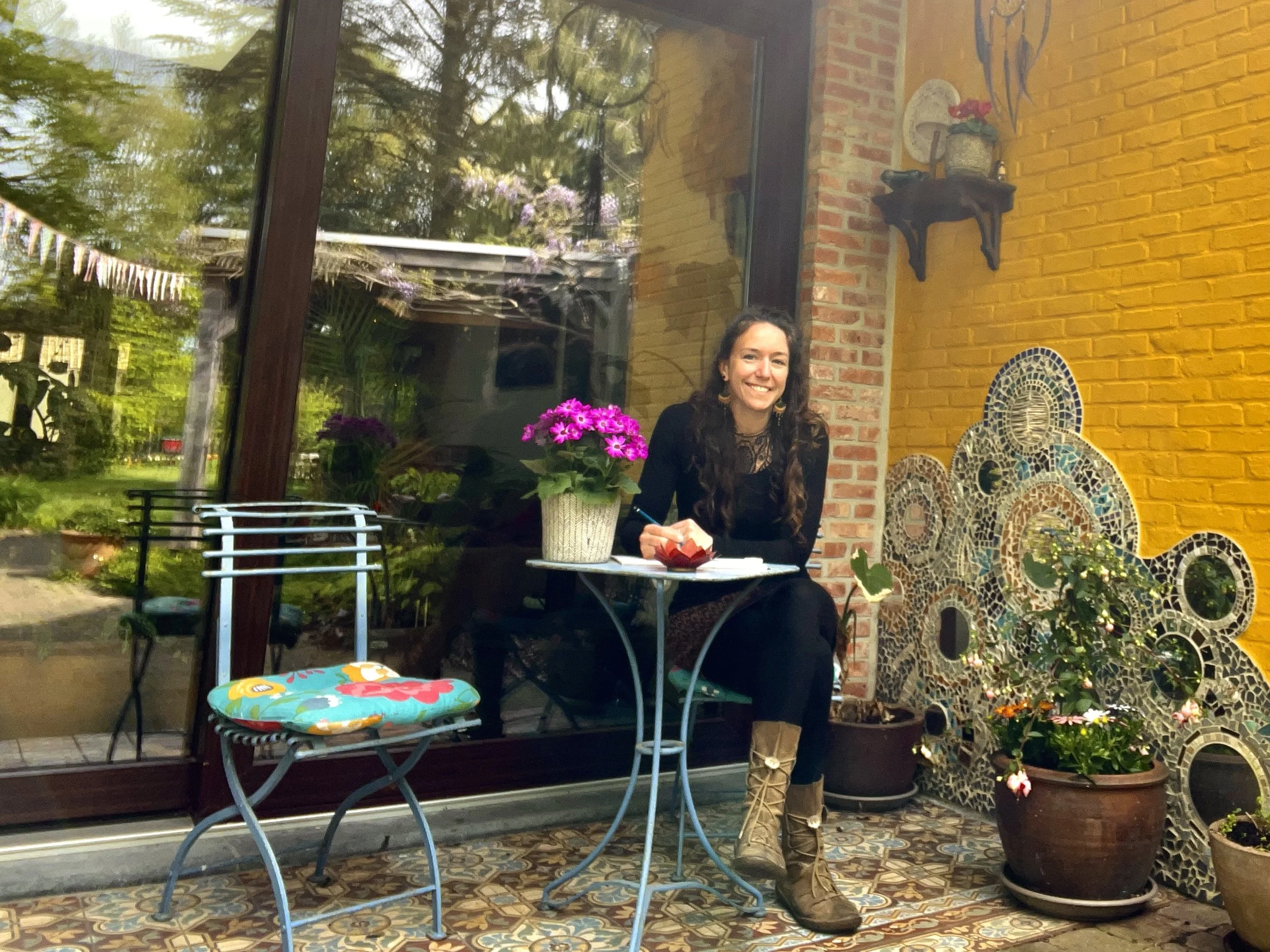 Wat voor mij het effectieve startpunt was van mijn reis naar binnen, is dat ik op mijn 13de op het nippertje een auto-ongeluk overleefde en gedurende mijn vroege pubertijd een verminkt gezicht had. Ik ben dankbaar omdat dit de aanzet is geweest om mezelf te willen bevrijden van angsten en onzekerheden. Het heeft me de weg gewezen om te leren omgaan met trauma en mijn nabij-de-dood-ervaring opende mijn geest. Mijn positieve, kleurrijke instelling heb ik absoluut toen meegekregen :-)
